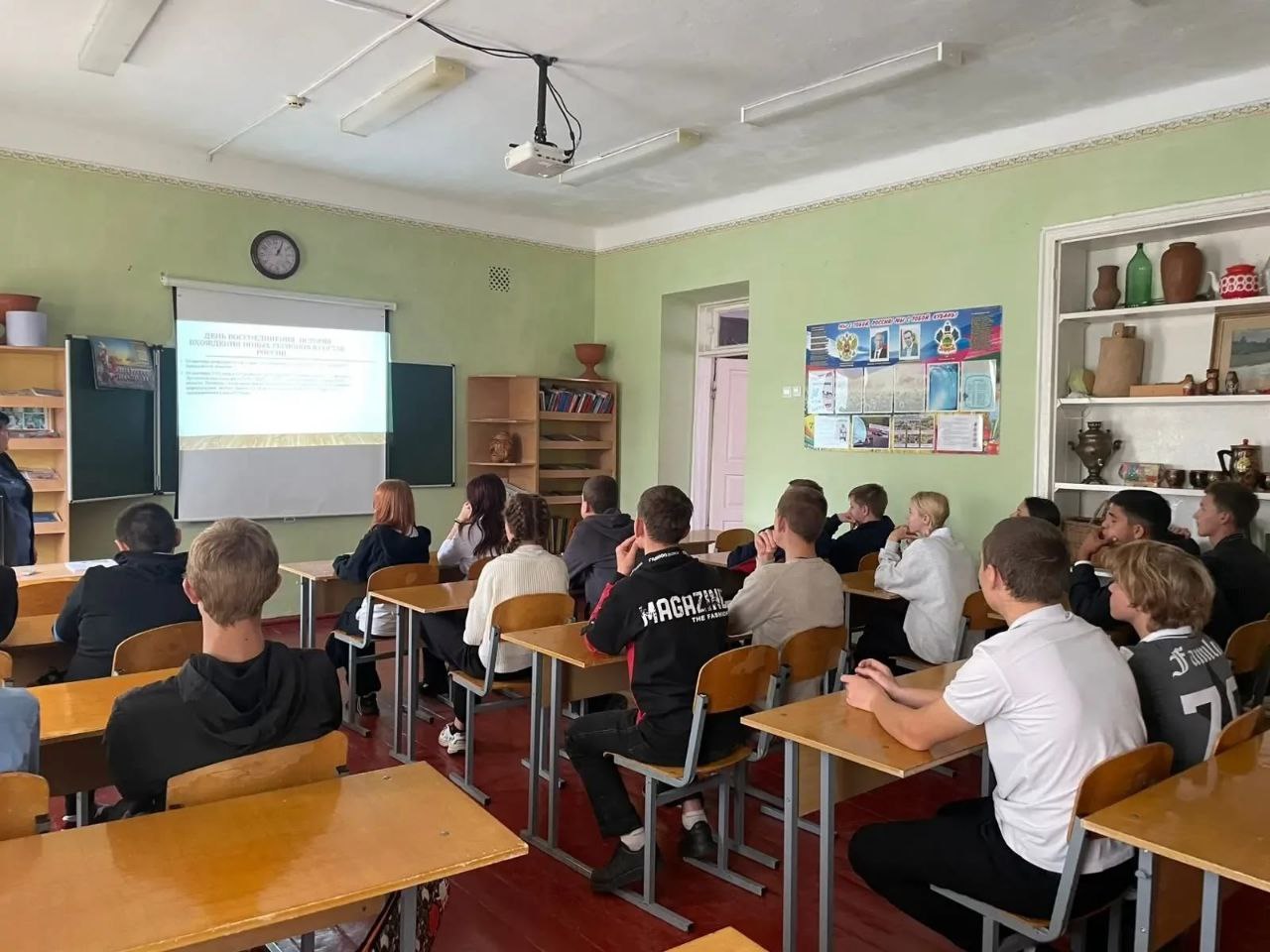 30 сентября в нашей школе прошли информационные мероприятия, посвящённые воссоединению ДНР, ЛНР, Запорожской и Херсонской областей с Россией. Учитель истории Деркач Г.Н., и сотрудник КДЦ хутора Братского, осветили основные этапы истории Новороссии, отметив, что наши общие предки еще сто лет назад не делили себя на великороссов, украинцев и белорусов – они были единым русским народом с общим родным языком и великой культурой. Обучающиеся узнали о том, какой трудный путь прошли в течение восьми лет жители Донбасса, отстаивая свое право говорить на русском языке, добиваясь независимости и признания. Памятная дата - 30 сентября 2022 года, навсегда войдет в нашу общую историю как день великого воссоединения. По окончании мероприятия участники задали интересующие их вопросы, выразили своё мнение об этом важном событии, заключив, что воссоединение ДНР, ЛНР, Запорожской и Херсонской областей с РФ имеет огромное значение для истории нашей страны.